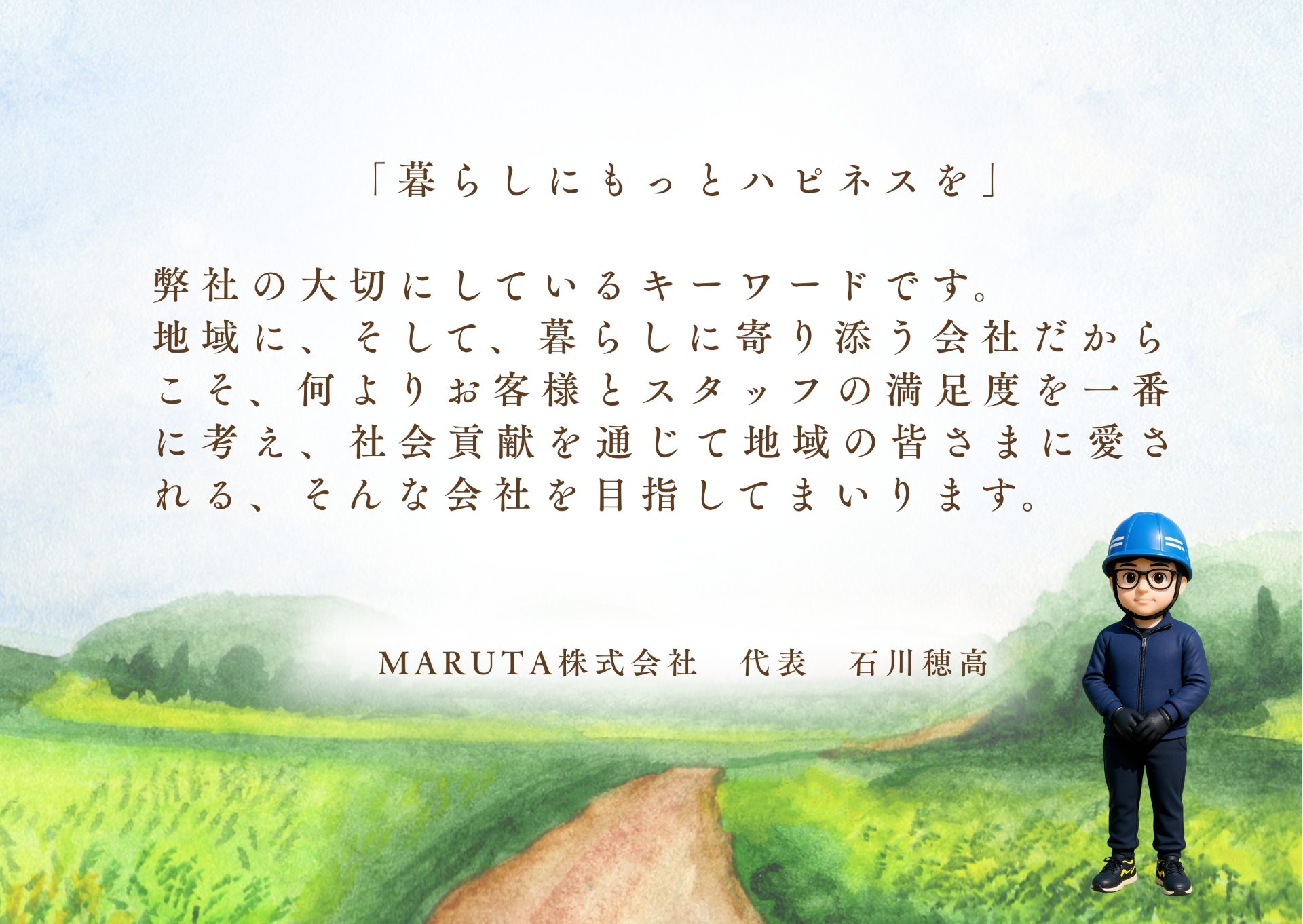 法人名 MARUTA株式会社 代表者 石川穂高 所在地(本社) 〒413-0231 静岡県伊東市富戸1317-5815 電話番号 電話・0557-31-1000 メール・ marutagarden@outlook.jp (勧誘・営業等はお控えください) 資本金 金3,000,000円 決算期 3月末 設立 令和7年3月(創業平成31年3月) 関連会社 株式会社いとうや物産・株式会社イトーヤ